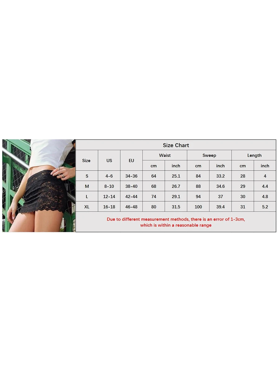 Women's Mini Lace Skirts Casual Low Waist Solid Color See Through Skirts Fashion Short Skirts